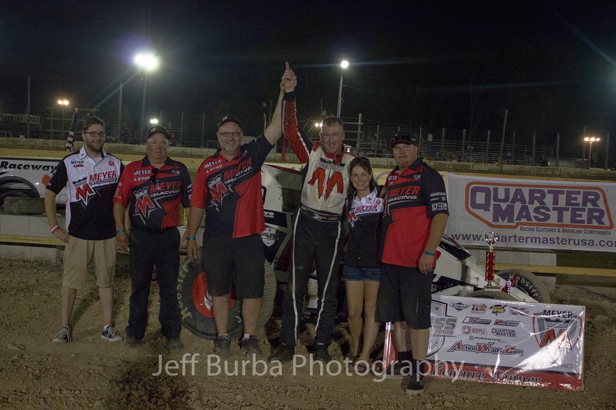 Todd Lehr picked up the Meyer Vacs & Valves Wisconsin wingLESS Sprint Serires by IRA feature Saturday night at Wilmot Raceway. In just over one year from its' inception the series has blossomed as 17 quality cars in the GM604 based series took the A-main green flag, and on this night 16 of the 17 were still there at the finish. Finishing behind Lehr were the son/father combo of Jake and Jimmy Kouba, inaugural series champ Doung Schenck, and coveted winged 410 racer Allen Hafford. The series returns to action at Wilmot again next Saturday night.