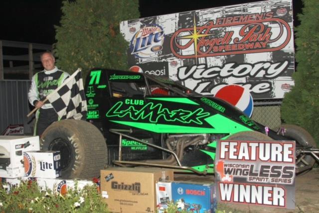 Sun Prairie, WI, Sept. 3---Doug Schenck scored a popular ”home track” victory Sunday Night winning the 25-lap Wisconsin wingLESS Sprint Series presented by the IRA feature at Angell Park Speedway.