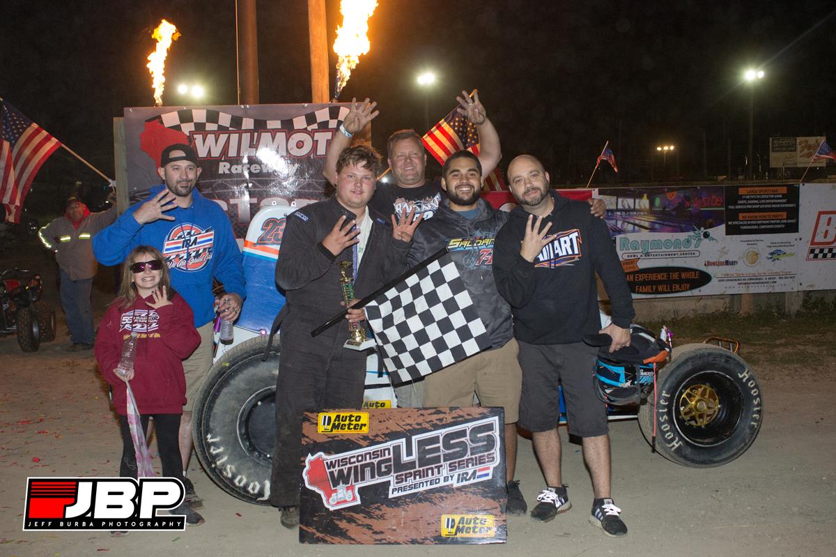 Zach Raidart of Antioch, IL won his fourth 20-lap AutoMeter Wisconsin WingLess Sprint feature of the season. "Each one is that much harder but feels that much better to get," said Raidart.